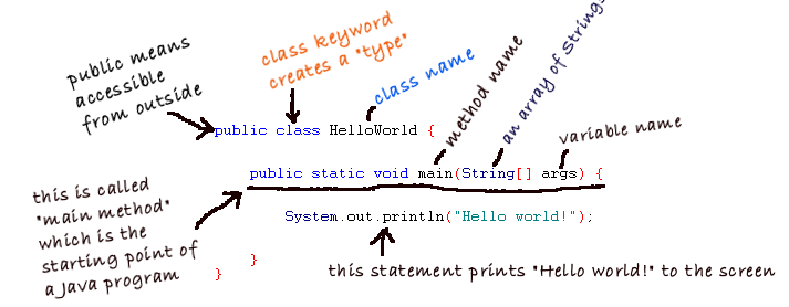 Next we get our main method, the method responsible for running our application. Every Java program requires a class that has a main method. Without it there is no program.